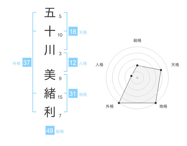 五十川 美緒利さんの外格は37画の5点!