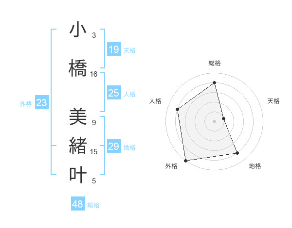 小橋 美緒叶さんの地格は29画の4点!