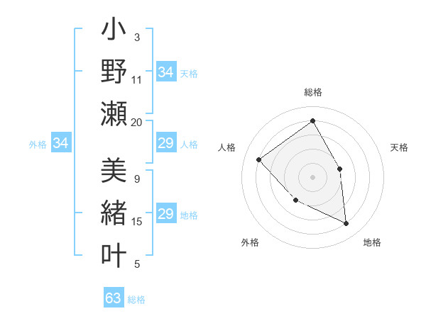 小野瀬 美緒叶さんを姓名の画数から五運を鑑定