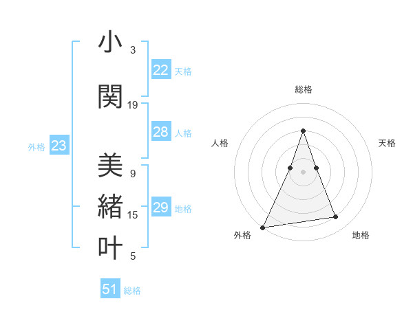 小関 美緒叶さんの総格は51画の3点!
