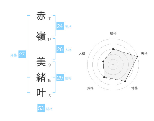 赤嶺 美緒叶さんの天格は24画の5点!
