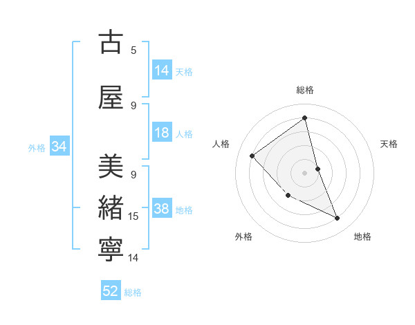 古屋 美緒寧さんの総格は52画の4点!