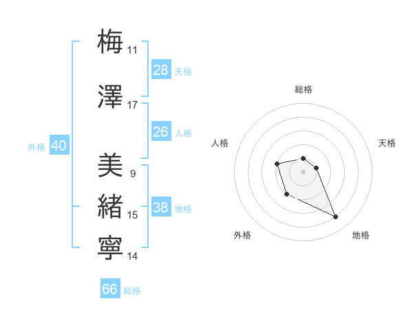 梅澤 美緒寧さんを姓名の画数から五運を鑑定
