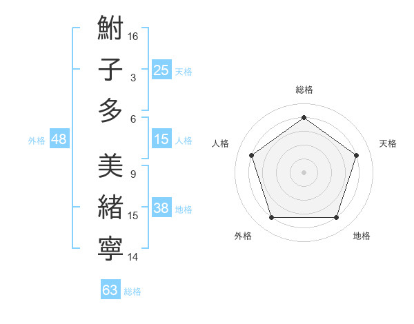 鮒子多 美緒寧さんを姓名の画数から五運を鑑定