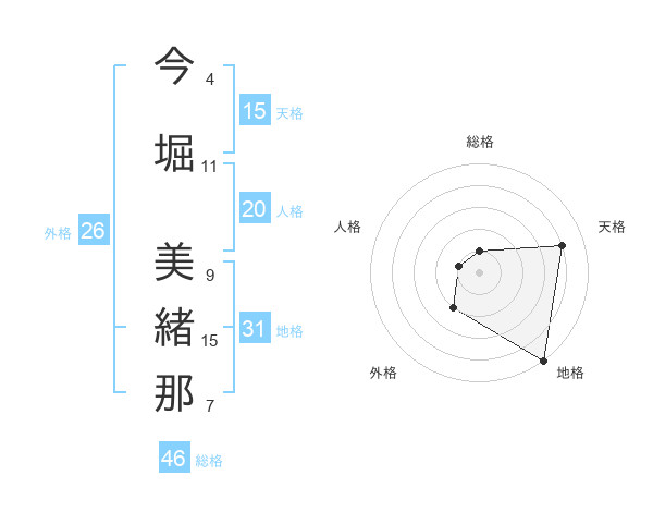 今堀 美緒那さんの地格は31画の5点!