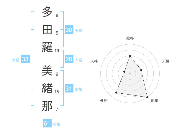 多田羅 美緒那さんを姓名の画数から五運を鑑定