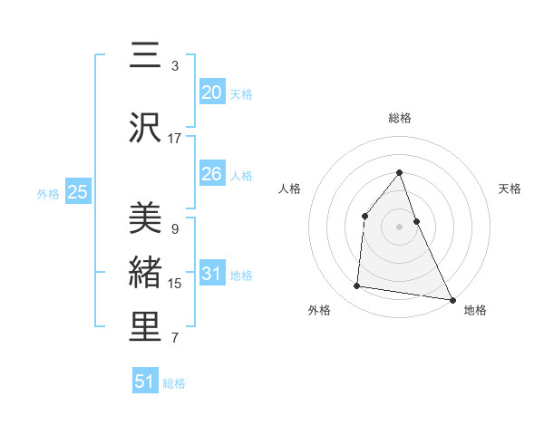 三沢 美緒里さんの総格は51画の3点