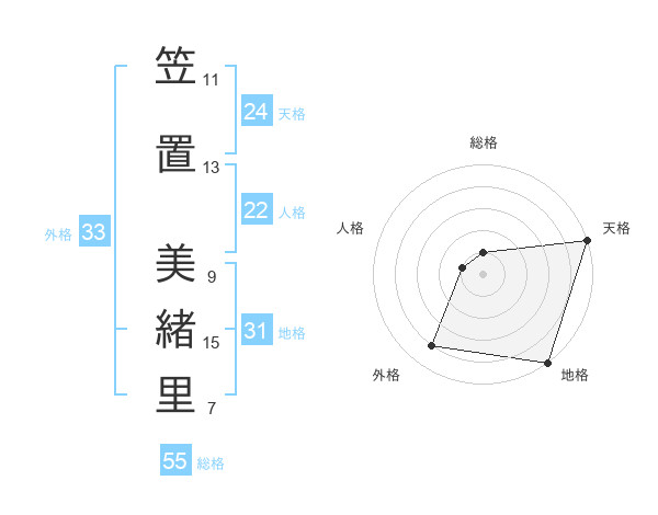 笠置 美緒里さんを姓名の画数から五運を鑑定