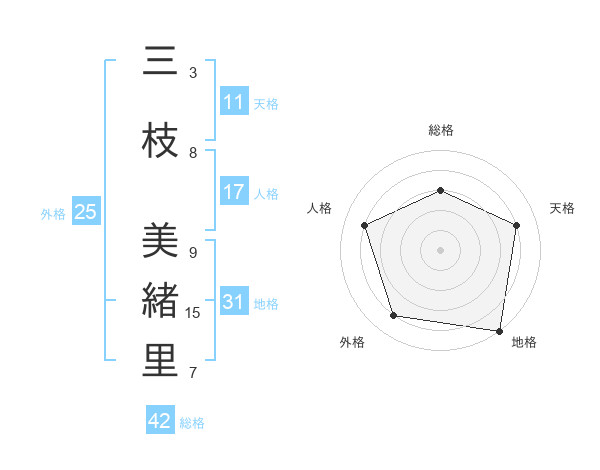 三枝 美緒里さんを姓名の画数から五運を鑑定