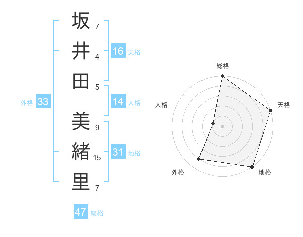 坂井田 美緒里さんの総格は47画の5点