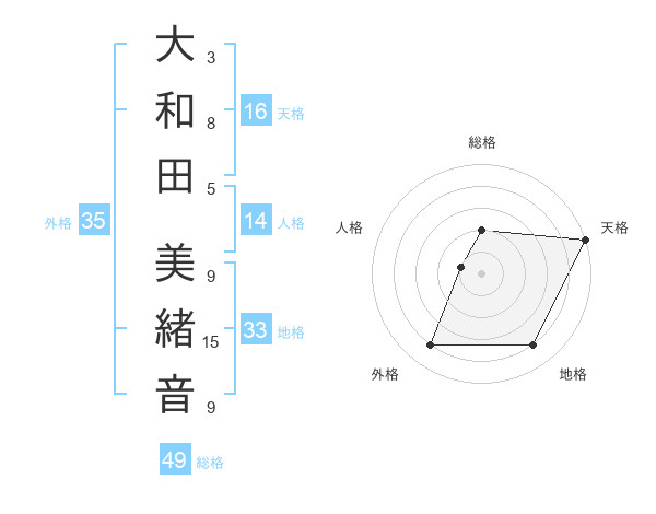 大和田 美緒音さんの総格は49画の2点