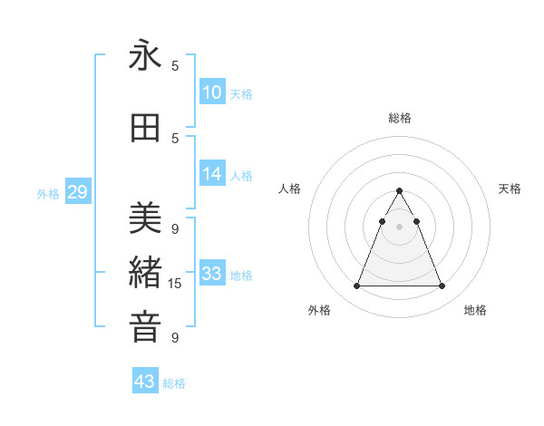 永田 美緒音さんを姓名の画数から五運を鑑定