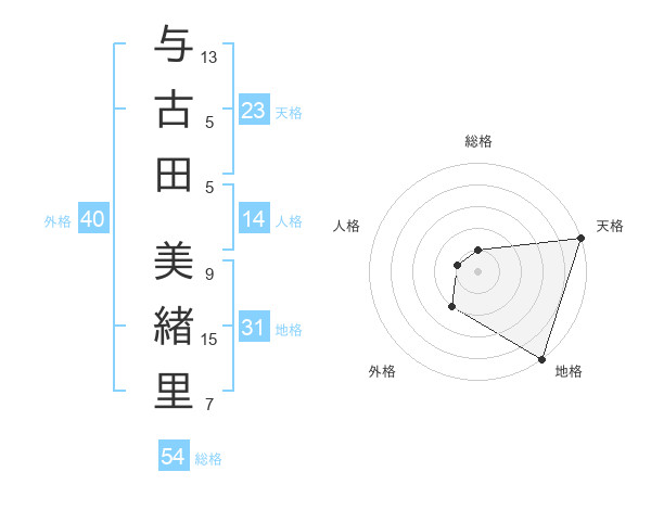 与古田 美緖里さんを姓名の画数から五運を鑑定