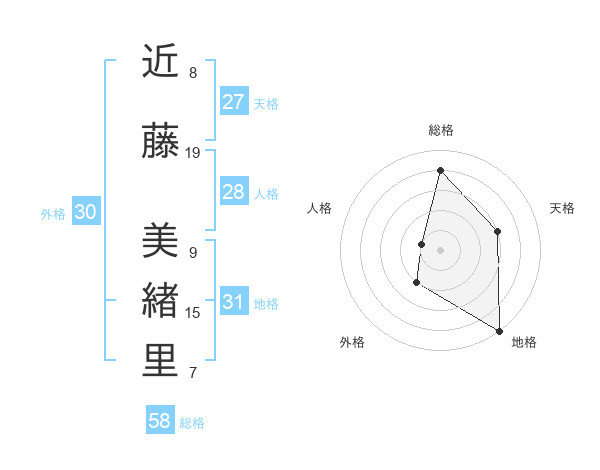 近藤 美緖里さんを姓名の画数から五運を鑑定
