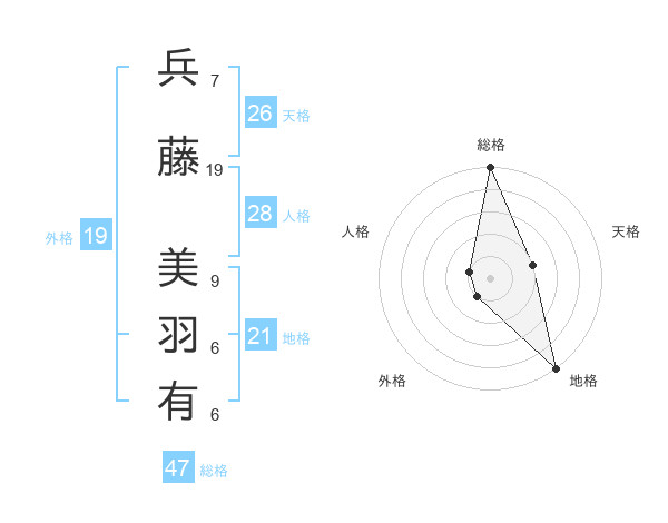 兵藤 美羽有さんの総格は47画の5点!