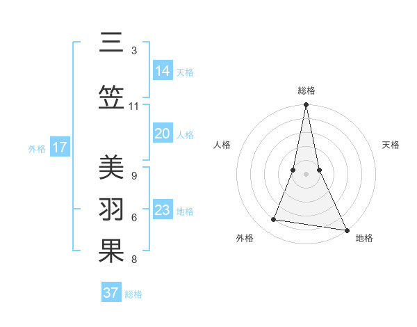 三笠 美羽果さんを姓名の画数から五運を鑑定
