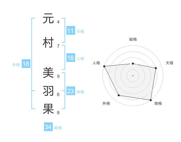 元村 美羽果さんを姓名の画数から五運を鑑定