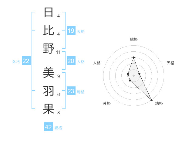 日比野 美羽果さんを姓名の画数から五運を鑑定