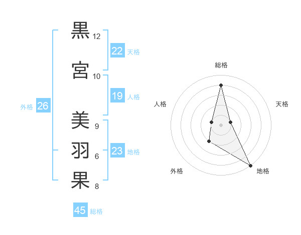 黒宮 美羽果さんの総格は45画の4点!