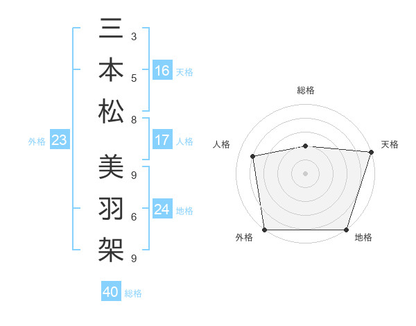 三本松 美羽架さんの外格は23画の5点!