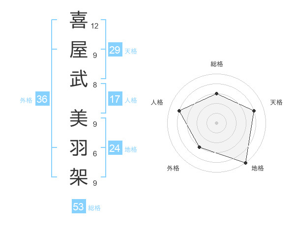 喜屋武 美羽架さんの総格は53画の3点