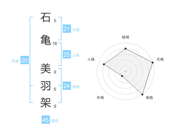 石亀 美羽架さんを姓名の画数から五運を鑑定