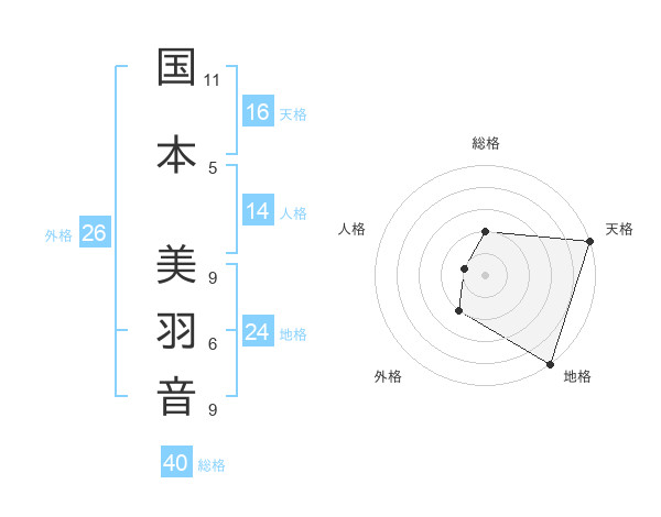 国本 美羽音さんを姓名の画数から五運を鑑定