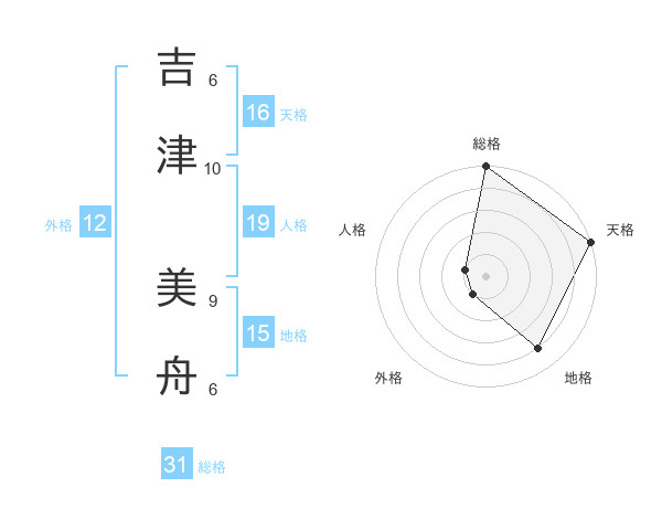 吉津 美舟さんの総格は31画の5点!