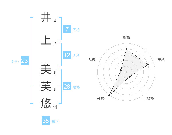井上 美芙悠さんを姓名の画数から五運を鑑定
