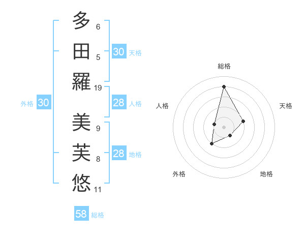 多田羅 美芙悠さんの総格は58画の4点!