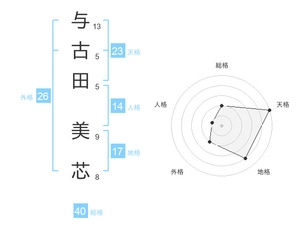 与古田 美芯さんを姓名の画数から五運を鑑定
