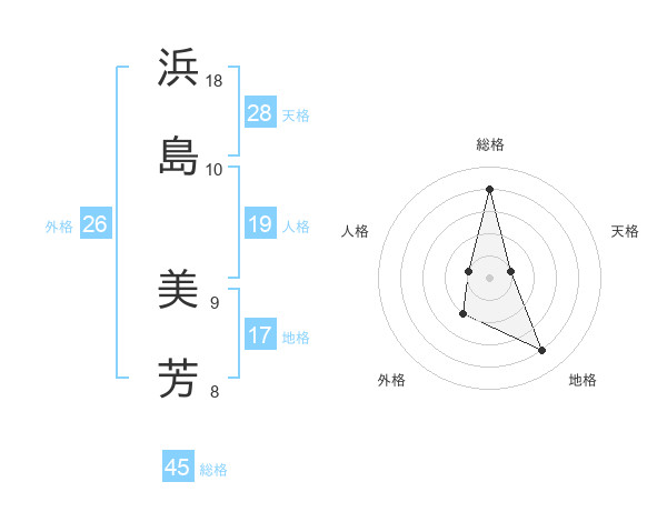浜島 美芳さんを姓名の画数から五運を鑑定
