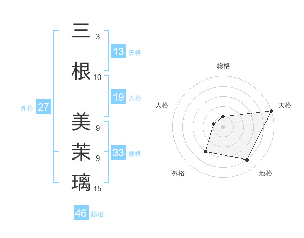三根 美茉璃さんを姓名の画数から五運を鑑定