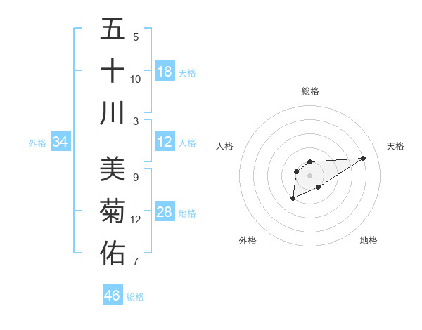 五十川 美菊佑さんを姓名の画数から五運を鑑定