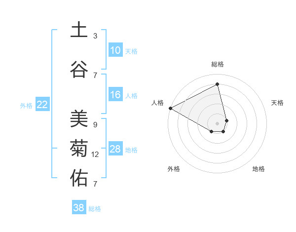 土谷 美菊佑さんを姓名の画数から五運を鑑定