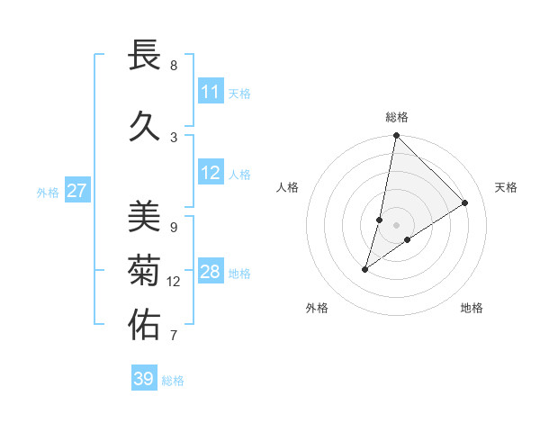 長久 美菊佑さんを姓名の画数から五運を鑑定