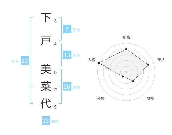 下戸 美菜代さんを姓名の画数から五運を鑑定