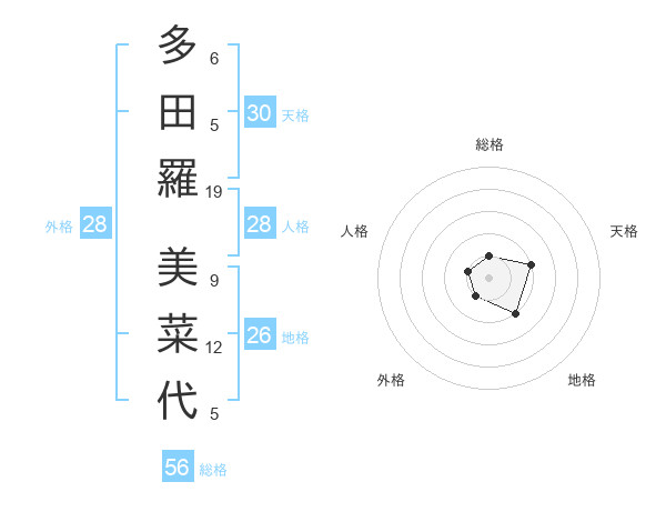 多田羅 美菜代さんを姓名の画数から五運を鑑定