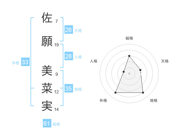 佐願 美菜実さんの総格は61画の3点!