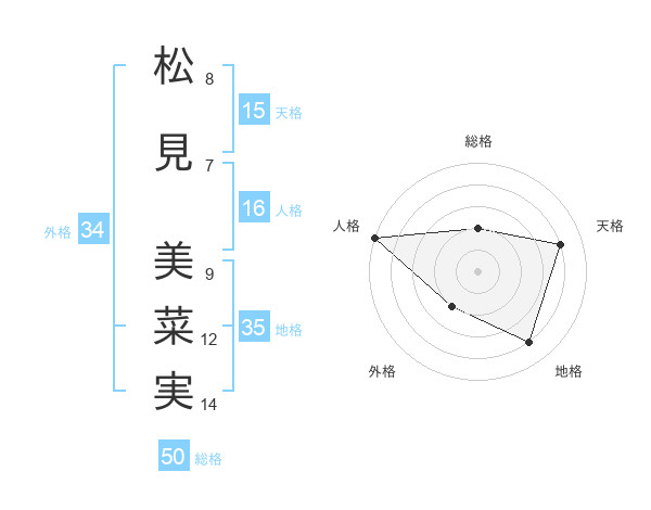 松見 美菜実さんを姓名の画数から五運を鑑定