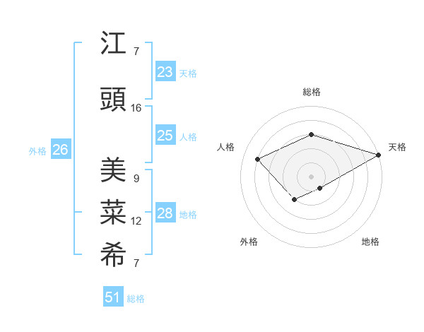 江頭 美菜希さんを姓名の画数から五運を鑑定