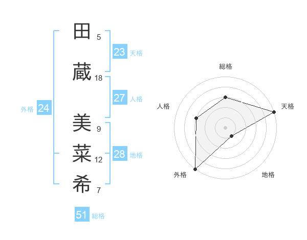 田蔵 美菜希さんの総格は51画の3点!