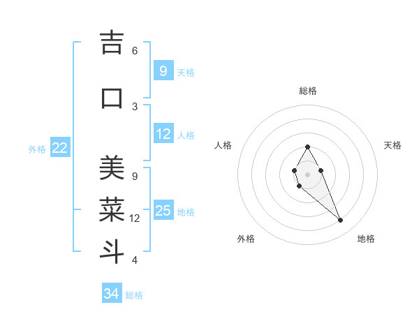 吉口 美菜斗さんの総格は34画の2点!