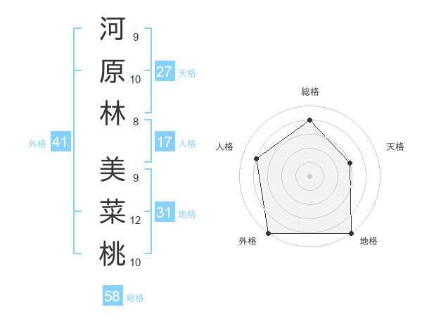 河原林 美菜桃さんを姓名の画数から五運を鑑定
