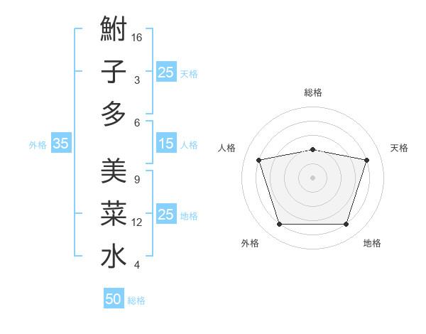 鮒子多 美菜水さんを姓名の画数から五運を鑑定