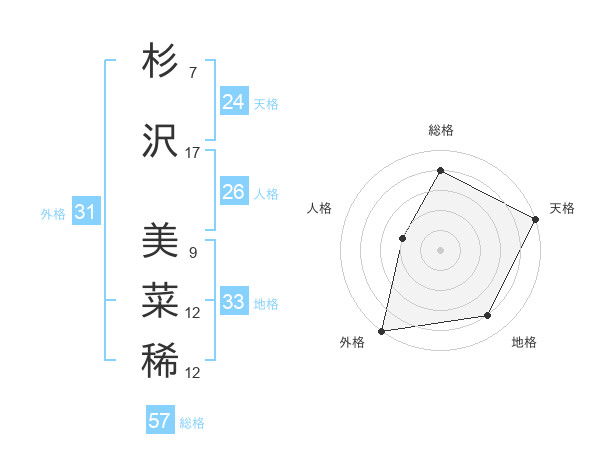 杉沢 美菜稀さんの総格は57画の4点!