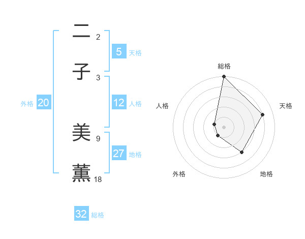 二子 美薫さんの総格は32画の5点!