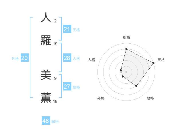 人羅 美薫さんの天格は21画の5点!