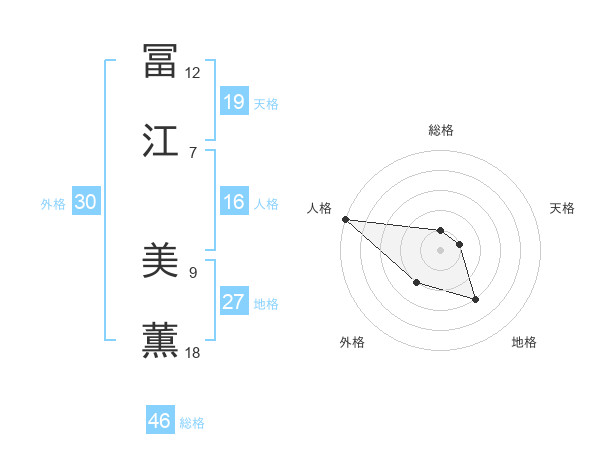 冨江 美薫さんの総格は46画の1点!