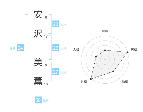 安沢 美薫さんの総格は50画の2点!